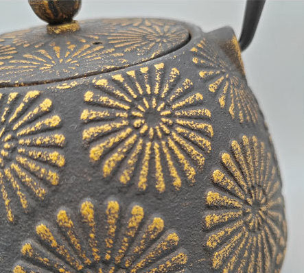 The teapot is designed with a woven handle for comfort and easy pouring, and its robust material makes it ideal for daily use. The detailed floral design highlights the beauty of Japanese artistry, making it not just functional but also a decorative piece for your home.